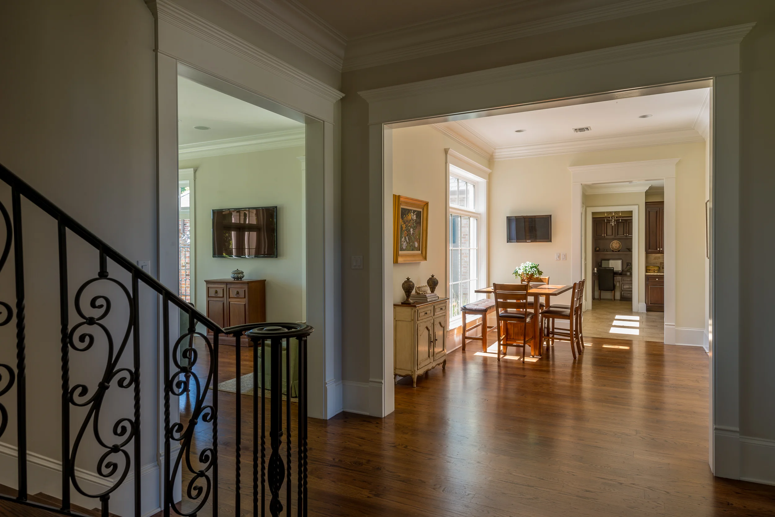 A single Sonance SST tucked away in the corner of this stately and elegant dining room provides just enough sound, but never intrudes.